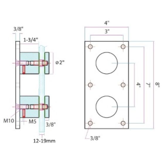 - Pre-drill a ø 3/4" hole in glass for grommet and fastener. Drill hole can't exceed ø 1.02"